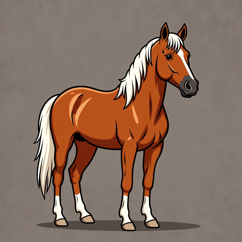 animal, brown horse, cartoon horse, chestnut horse, clipart, digital illustration, equine, friendly horse, glossy coat, illustration, isolated background, palomino, side view, standing horse, vector art, white mane, white tail, horse