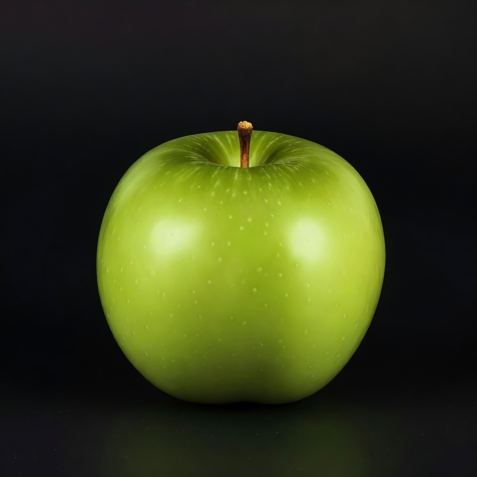 apple, black background, closeup, fresh apple, fruit, glossy apple, green fruit, healthy fruit, isolated, produce, ripe apple, single apple, stem, green apple