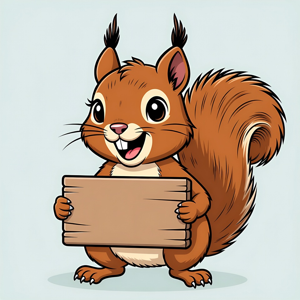 Cartoon squirrel holding blank sign