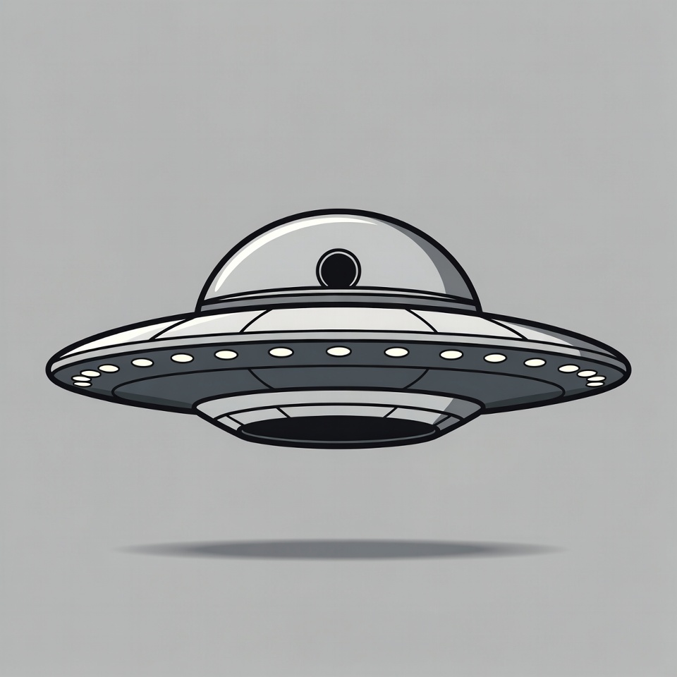 alien spaceship, cartoon, clipart, dome, drop shadow, extraterrestrial, flying saucer, graphic, gray background, illustration, isolated background, line art, outline, saucer, sci-fi, simple, spacecraft, vector, white lines, UFO