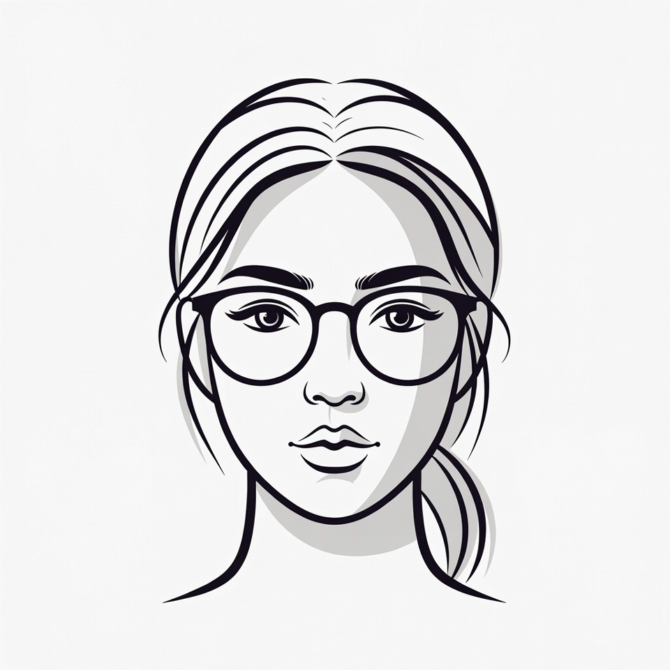 White, clipart, drawing, eyeglasses, face, female, glasses, headshot, illustration, isolated background, line art, long hair, modern, portrait, smiling, stylish, vector, wavy hair, woman