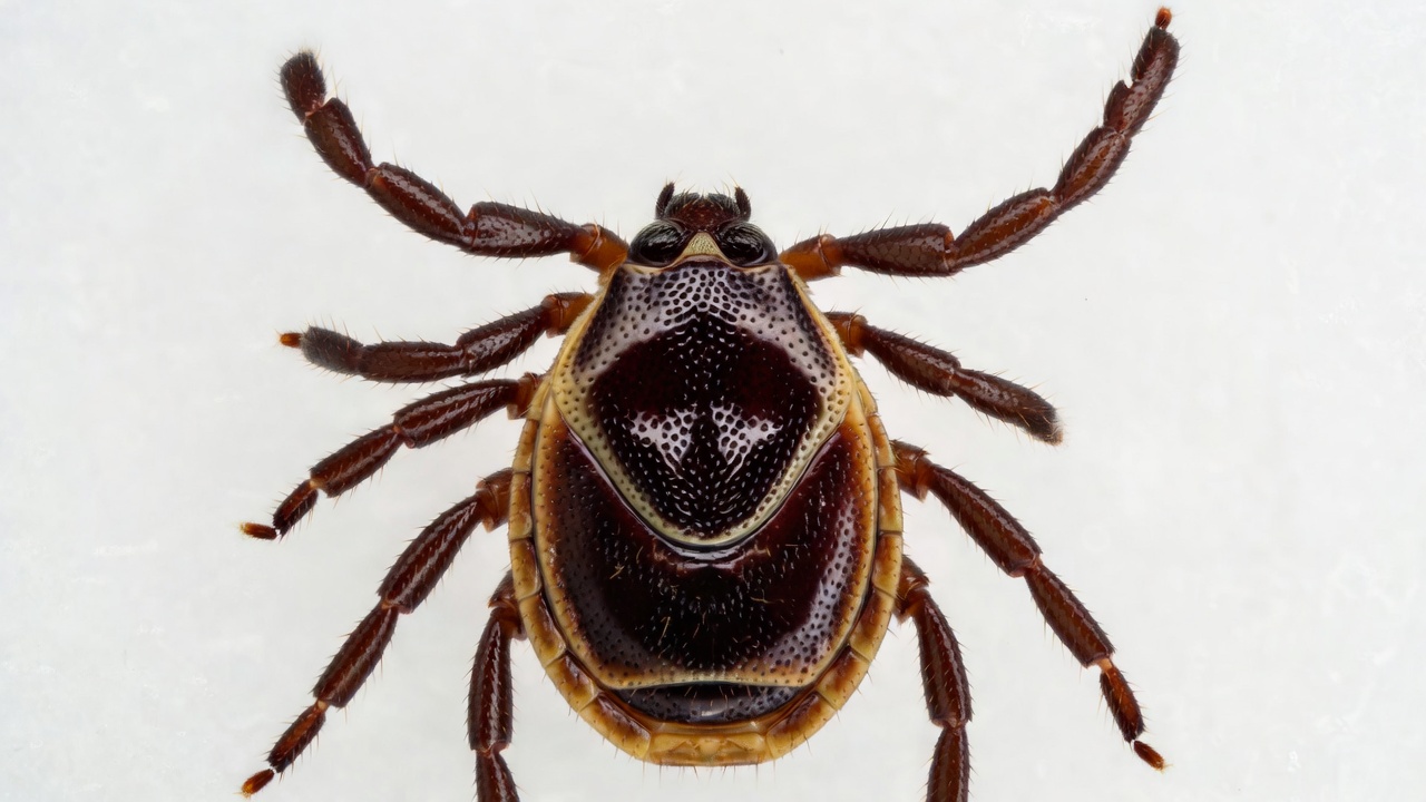 Ixodes scapularis, arachnid, arthropod, black legs, blacklegged tick, close-up, deer tick, insect, legs extended, macro photography, parasite, red brown body, white background, wildlife, tick