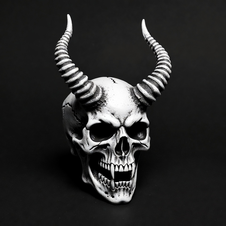 Halloween, black background, bony, cracked skull, curved horns, dark art, decoration, demon, devil skull, evil, fangs, fantasy, gothic, horns, horror, isolated, macabre, monstrous, prop, skull, skull model, snarling skull, supernatural, white skull, demon skull