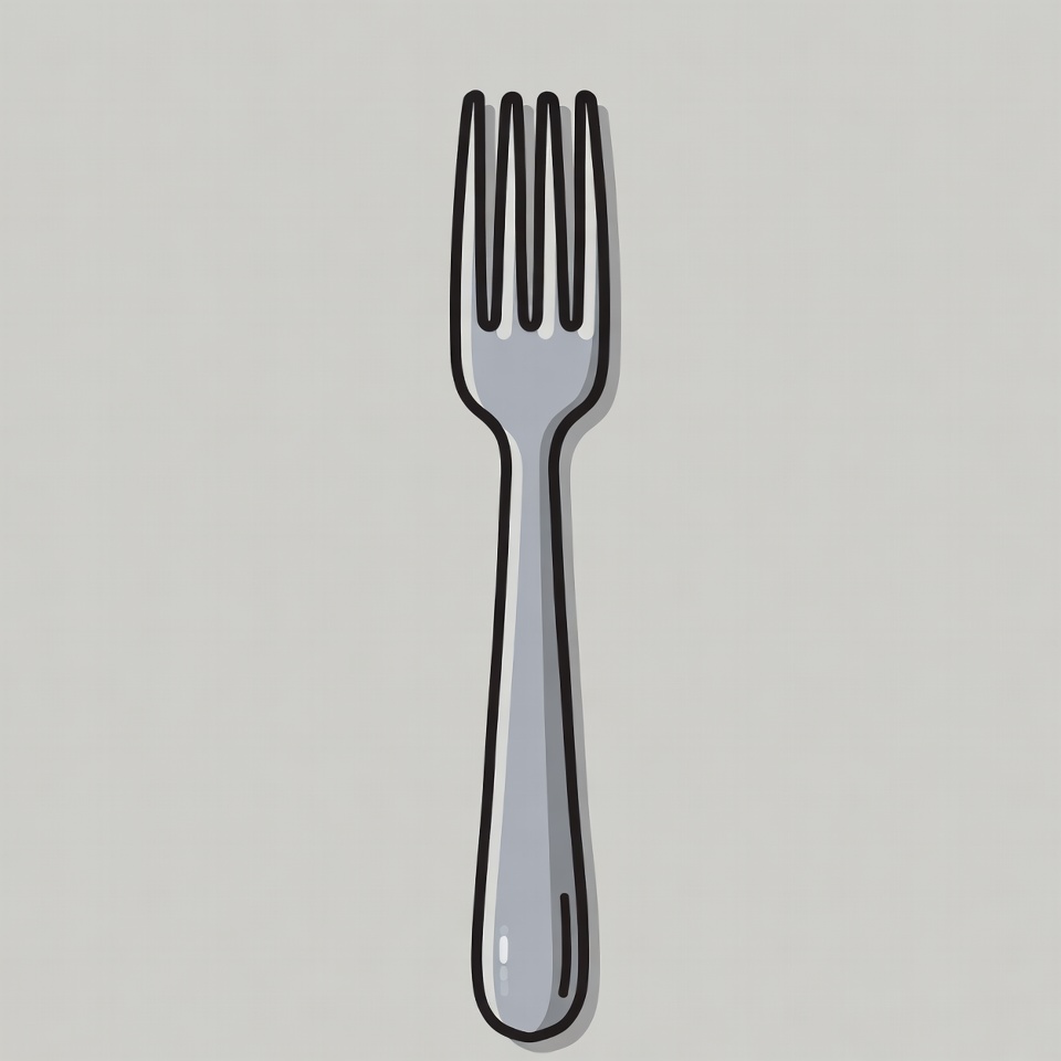 clipart, cutlery, eating utensil, flat design, gray background, illustration, isolated background, kitchen utensil, line art, silver fork, tableware, vector, fork