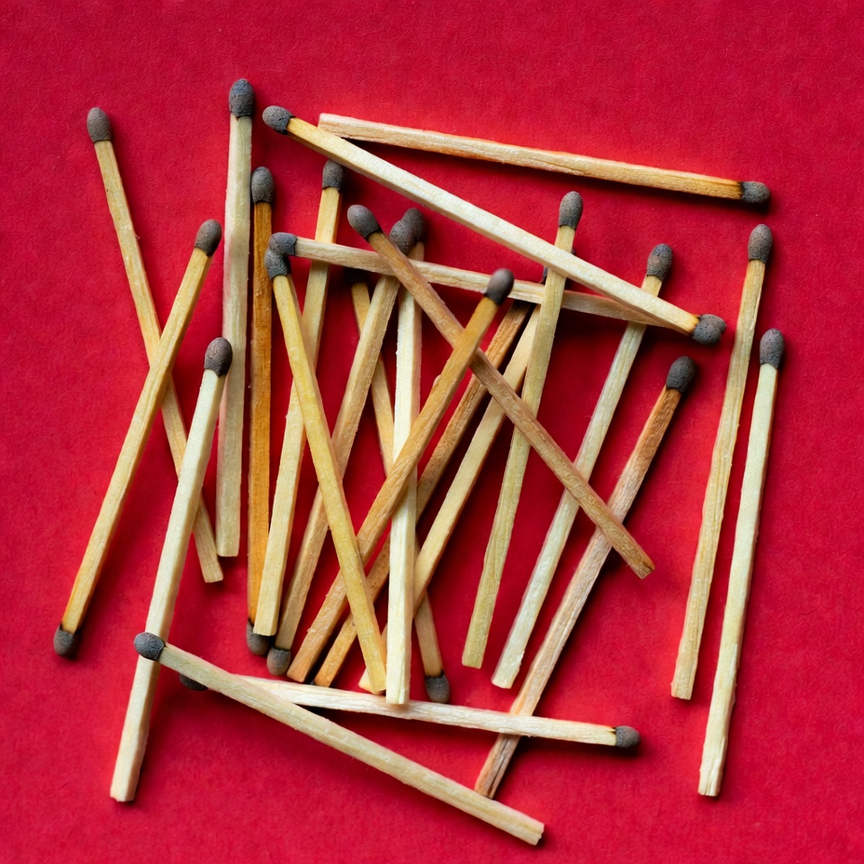 Matches scattered on red background