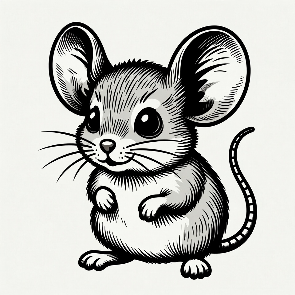 adorable animal, animal, baby mouse, big ears, black and white, cartoon mouse, clipart, drawing, isolated background, kawaii mouse, line art, mouse illustration, rodent, smiling mouse, vector art, whiskers, cute mouse