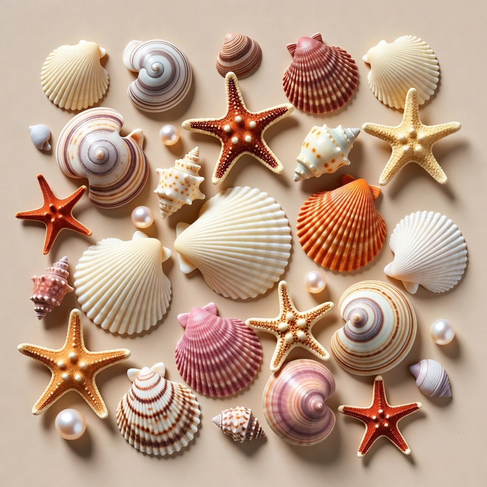Colorful Seashells and Starfish Arrangement