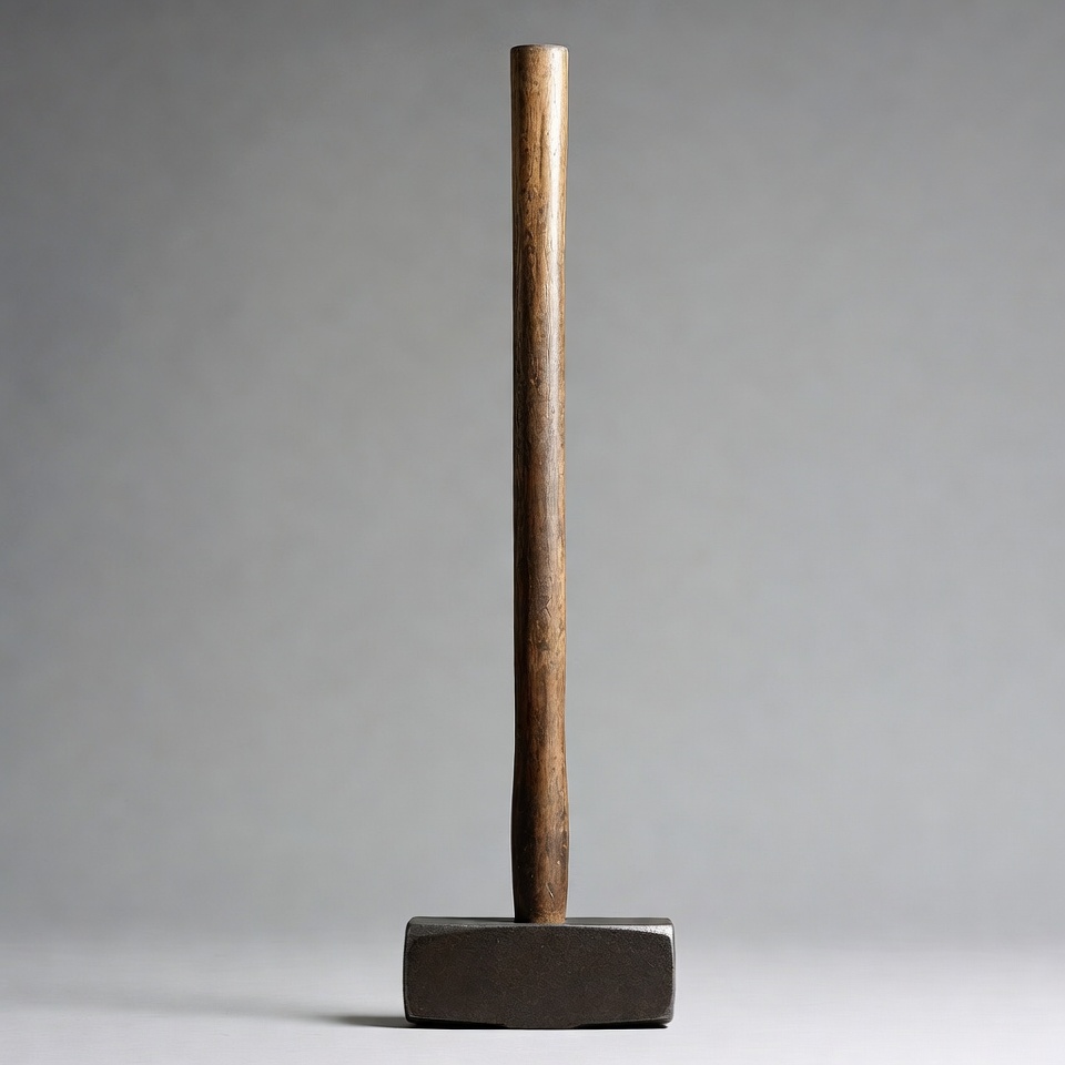 blacksmith hammer, carpenter tool, construction tool, demolition hammer, gray background, hammer, heavy hammer, isolated background, metal head, tool, upright hammer, wooden handle, sledgehammer