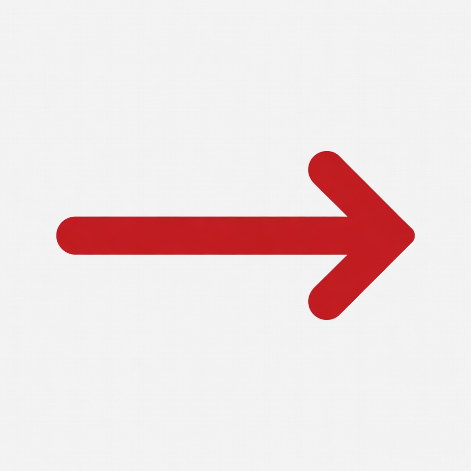 A bold red arrow points to the right on a plain gray background. The arrow has a simple, flat design with clean lines and a rounded head.