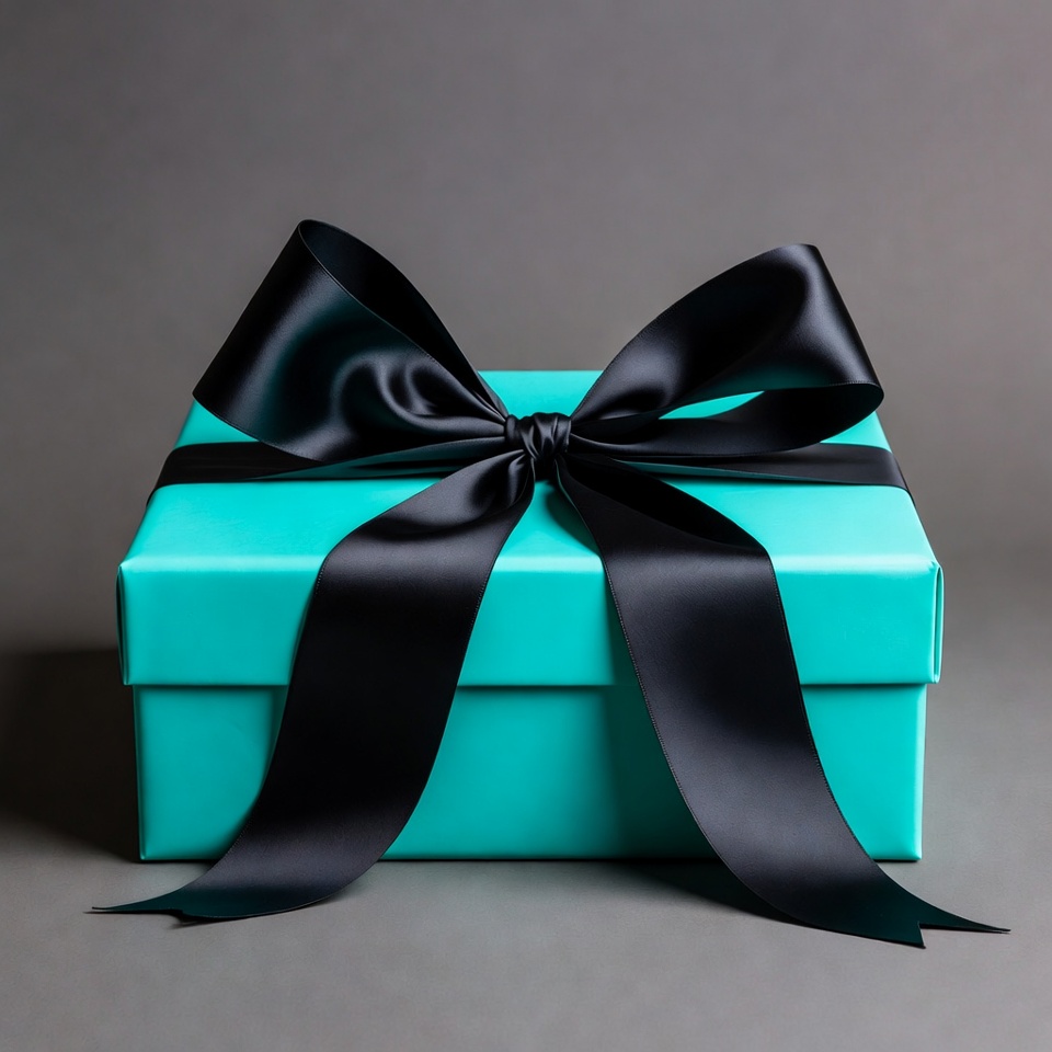 birthday present, black bow, black ribbon, bow tie gift, boxed gift, elegant bow, festive present, gift packaging, glossy box, gray background, holiday gift, isolated background, luxury gift, present, ribbon, satin bow, teal box, turquoise box, wrapped gift, gift box