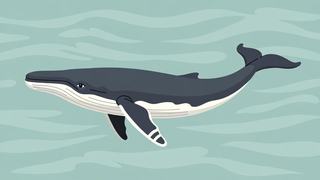 animal illustration, blue background, cetacean, clipart, flippers, illustration, marine animal, ocean, sea creature, swimming, tail fluke, vector art, waves, whale, humpback whale
