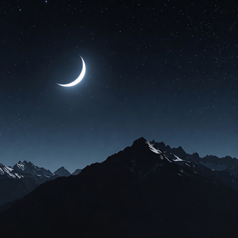 Crescent Moon over Snowy Mountains