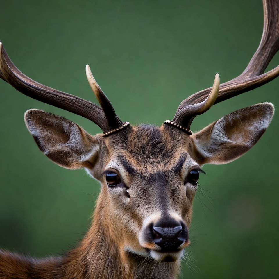 animal, antlers, brown deer, buck, cervidae, closeup, forest animal, green background, horns, hunting trophy, large antlers, male deer, mammal, nature, outdoors, portrait, stag, wild deer, wildlife, deer