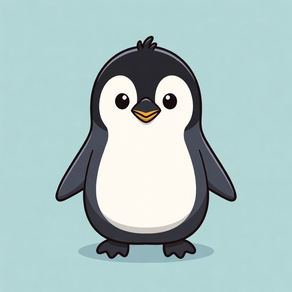 animal, arctic animal, big eyes, bird, black penguin, cartoon penguin, chubby penguin, clipart, cute animal, cute penguin, isolated background, kawaii penguin, orange beak, penguin illustration, vector art, white belly, penguin