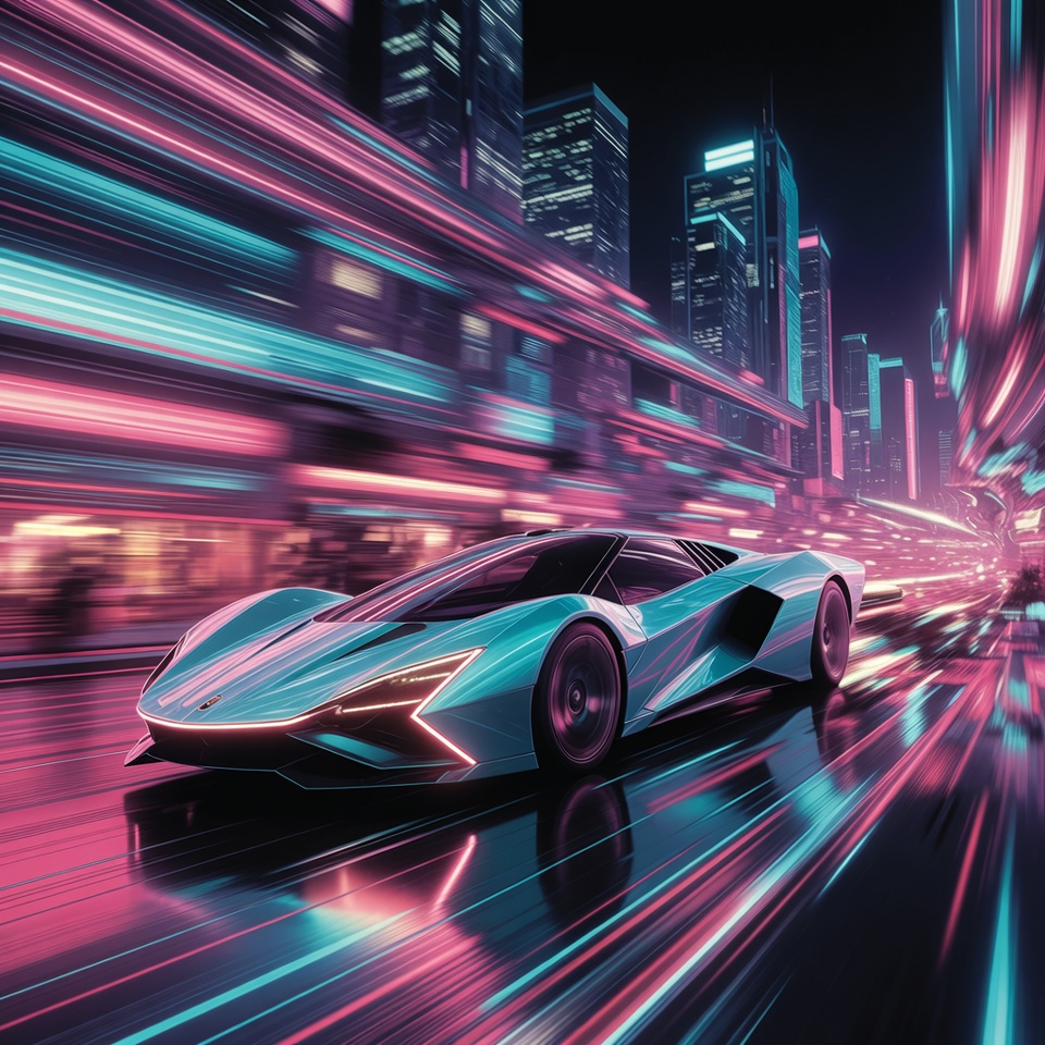 Futuristic Supercar Speeding in Neon City