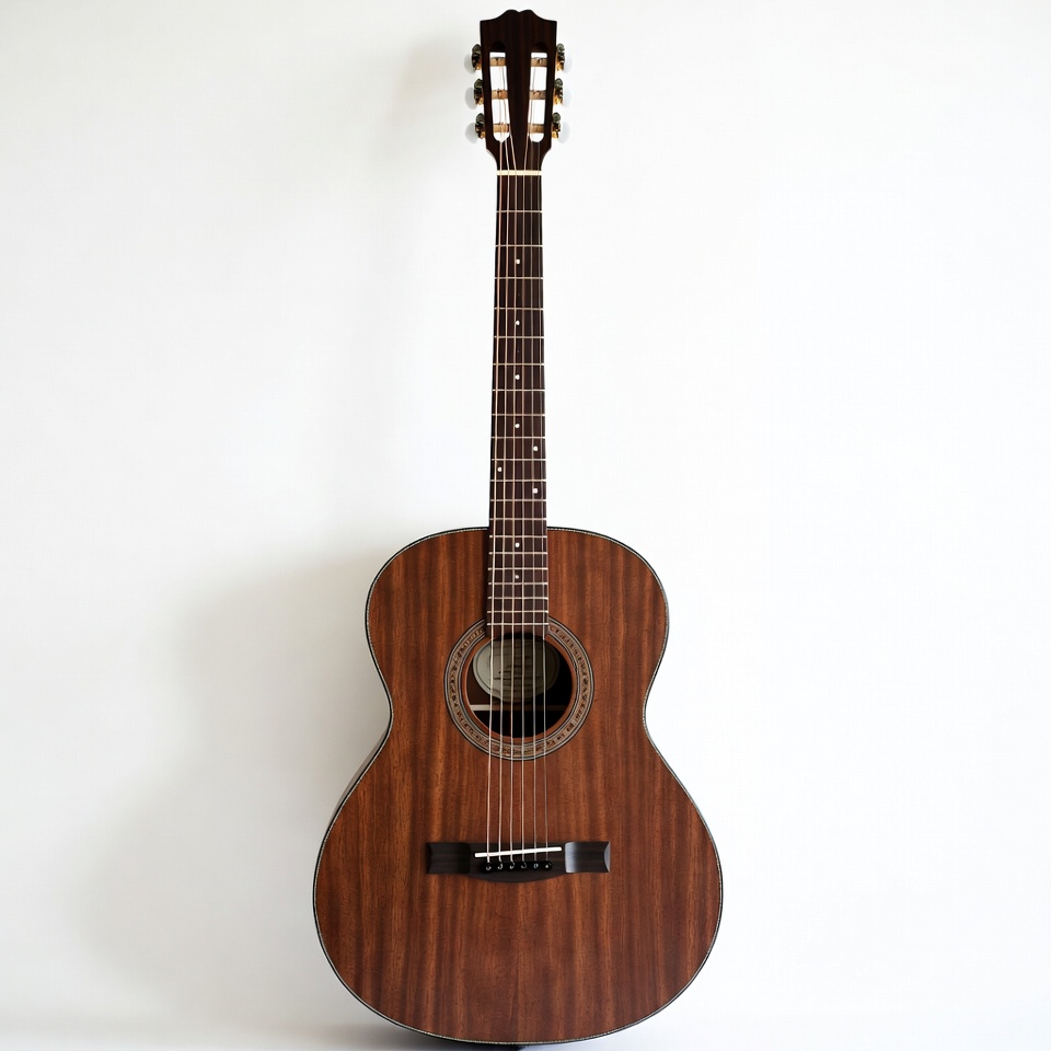 body, bridge, brown guitar, classical guitar, frets, guitar, isolated, music instrument, musical instrument, neck, sound hole, strings, upright guitar, white background, wooden guitar, acoustic guitar