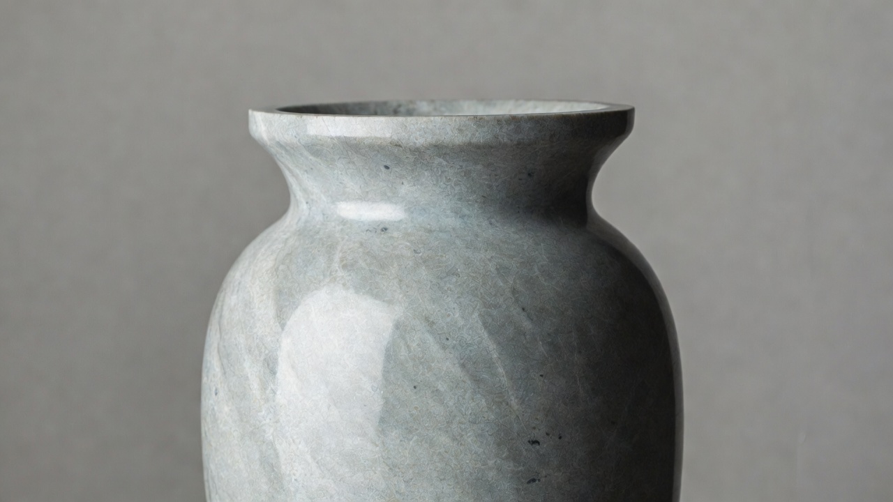 bulbous vase, decorative vase, glossy surface, gray vase, isolated background, luxury vase, modern vase, stone vase, white veining, marble vase