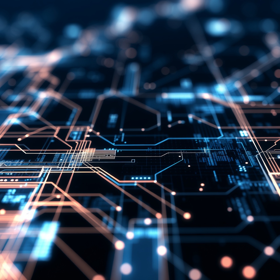 PCB, blue lights, bokeh, closeup, components, cyber, dark background, digital circuit, electronics, futuristic, glowing traces, high-tech, microchip, motherboard, neon lights, network, orange glow, printed circuit, semiconductor, technology, wires, circuit board