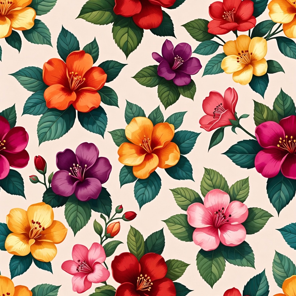 beige background, clipart, colorful flowers, floral design, floral pattern, flower buds, flowers, green leaves, hibiscus, hibiscus pattern, illustration, orange flowers, pink flowers, purple flowers, red flowers, seamless pattern, tropical flowers, vector pattern, yellow flowers, hibiscus flowers