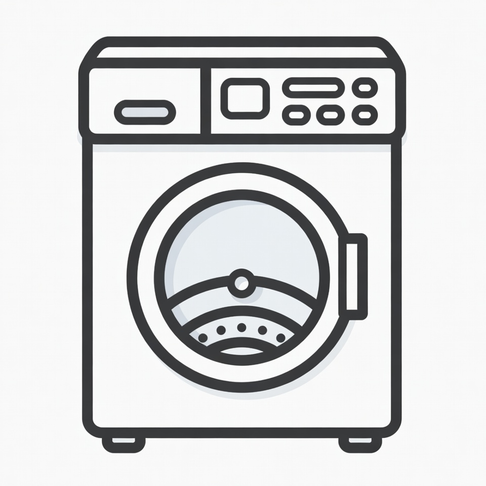 appliance, buttons, clean clothes, clipart, control panel, door, drum, front loading, household, icon, illustration, isolated background, laundry appliance, line art, washer, washing machine