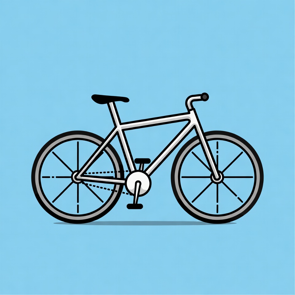 bike, chain, clipart, cycling, frame, handlebars, illustration, isolated background, line art, minimalist, pedals, road bike, silver bike, simple drawing, vector, wheels, bicycle