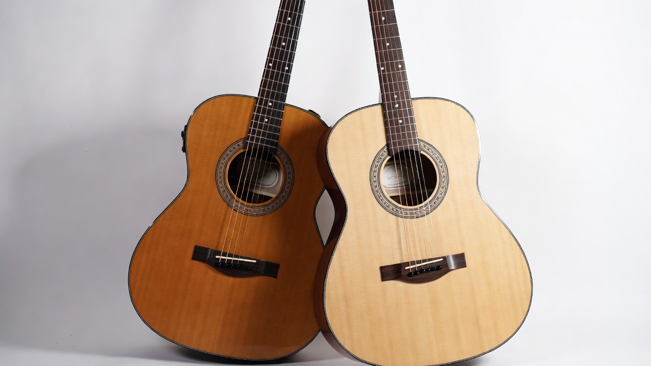 Two Acoustic Guitars on White Background