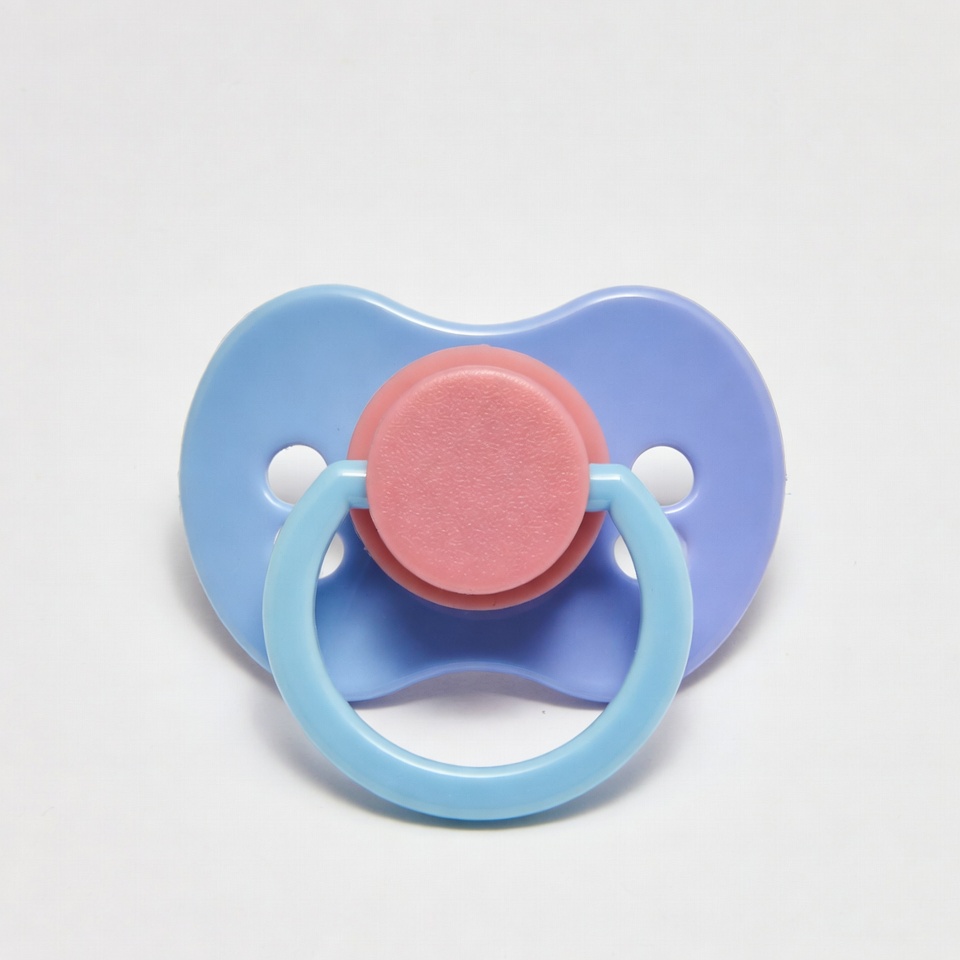 baby accessory, baby pacifier, baby product, binky, blue pacifier, dummy, infant soother, isolated background, newborn, pink nipple, soothing toy, white background, pacifier