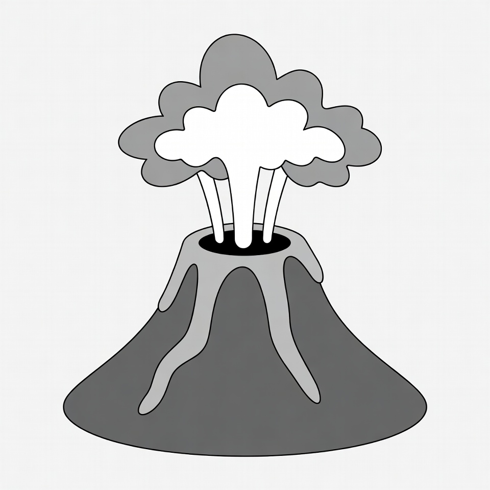 cartoon, clipart, erupting volcano, eruption, gray, illustration, isolated background, lava, mountain, smoke, white background, volcano