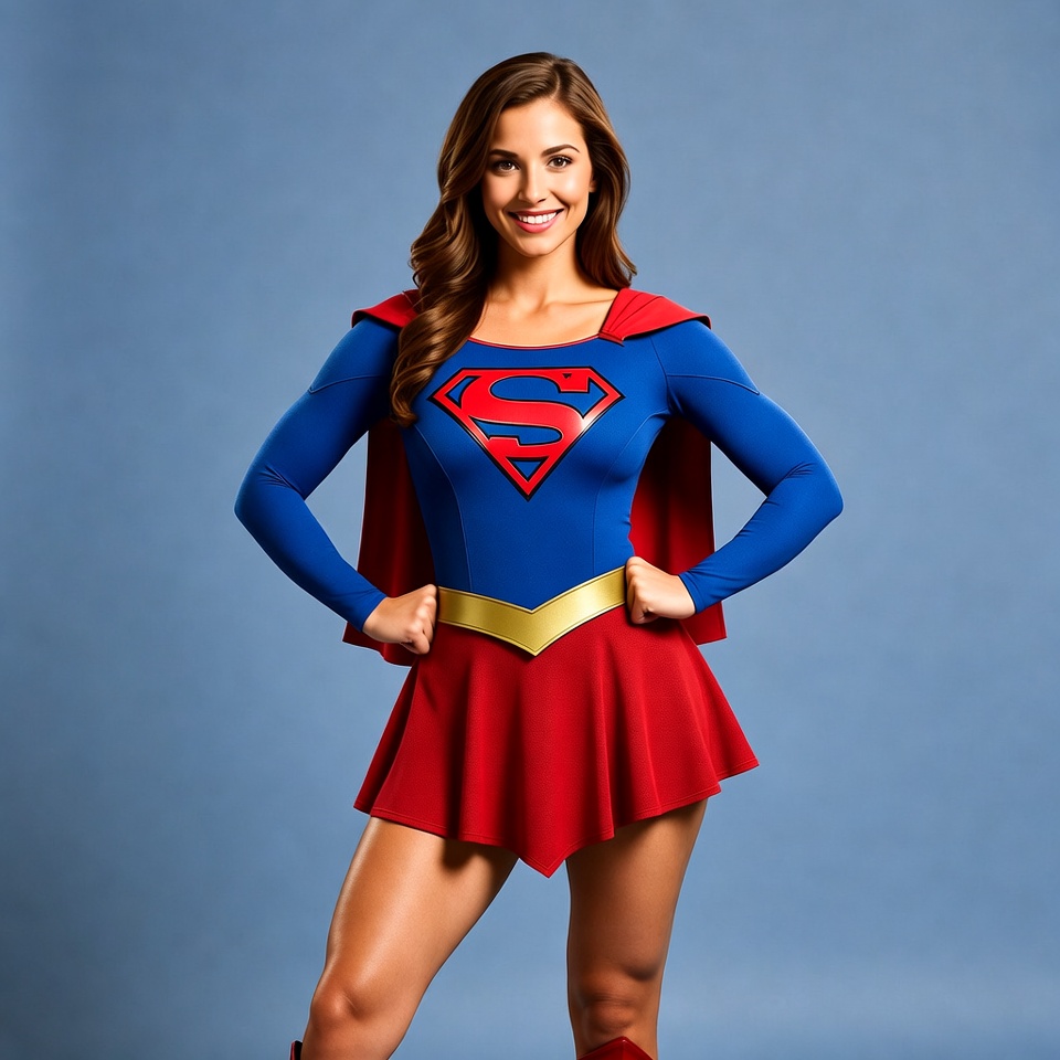 Woman in Supergirl costume posing