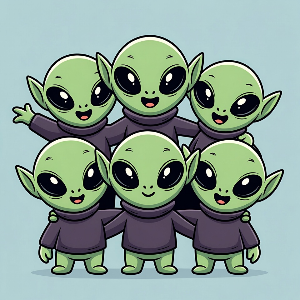 Group of Cute Cartoon Aliens Hugging