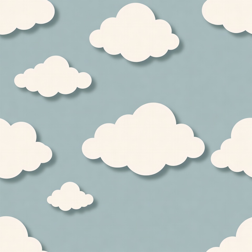 White Paper Cutout Clouds on Blue Background