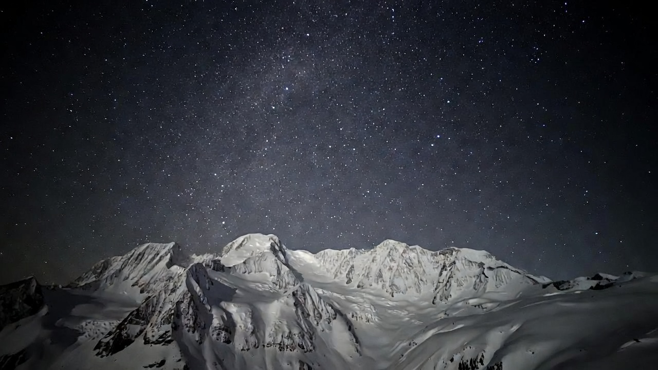 Milky Way, alpine peaks, astronomy, celestial, cosmos, dark sky, galaxy, glacier, high altitude, ice mountains, moonlight, mountain photography, mountain range, night sky, nightscape, panoramic view, rugged mountains, snow peaks, starry sky, stars, stellar view, winter landscape, snowy mountains