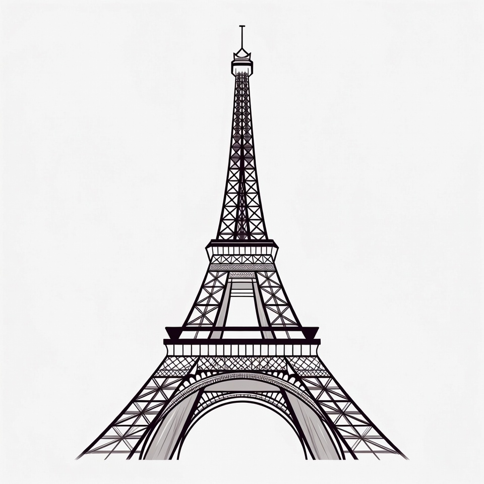 European landmark, France, Paris, architecture, black white, clipart, famous monument, illustration, iron lattice, isolated background, landmark, line art, outline, silhouette, tower, travel icon, vector, Eiffel Tower