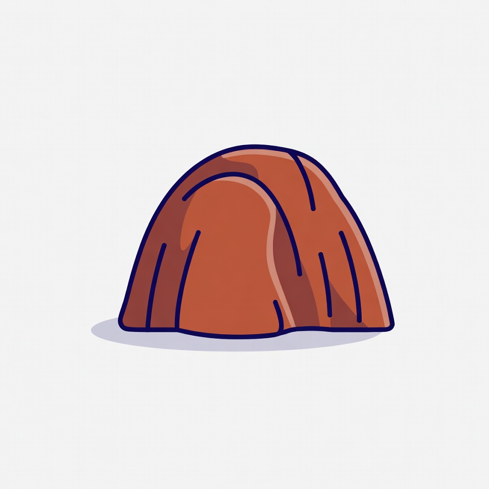 A simple cartoon illustration of a brown dome-shaped tent on a white background. The tent features curved outlines and subtle shading for depth. It stands isolated with a small shadow beneath.