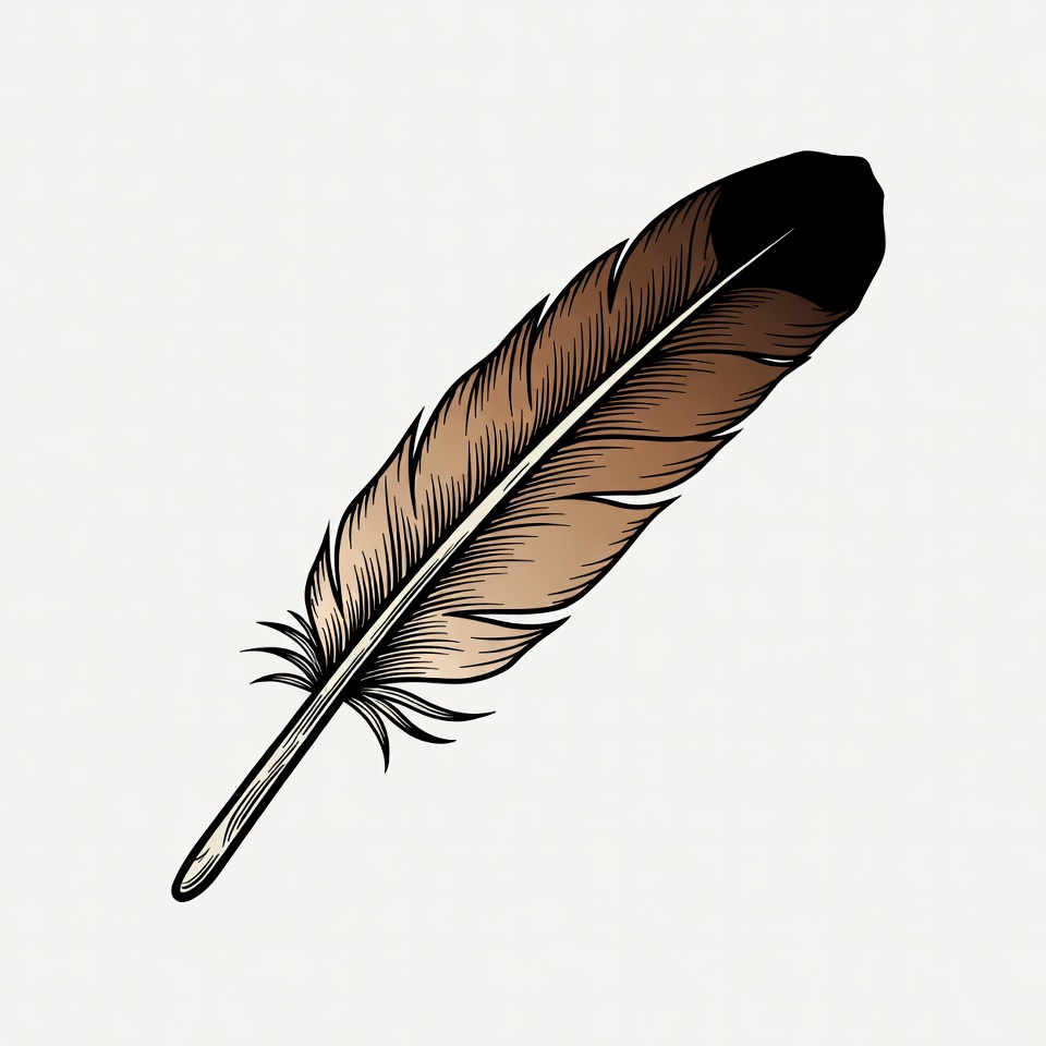 bird feather, black tip, brown feather, clipart, detailed feather, illustration, isolated background, line art, tan feather, vector feather, wildlife art, feather