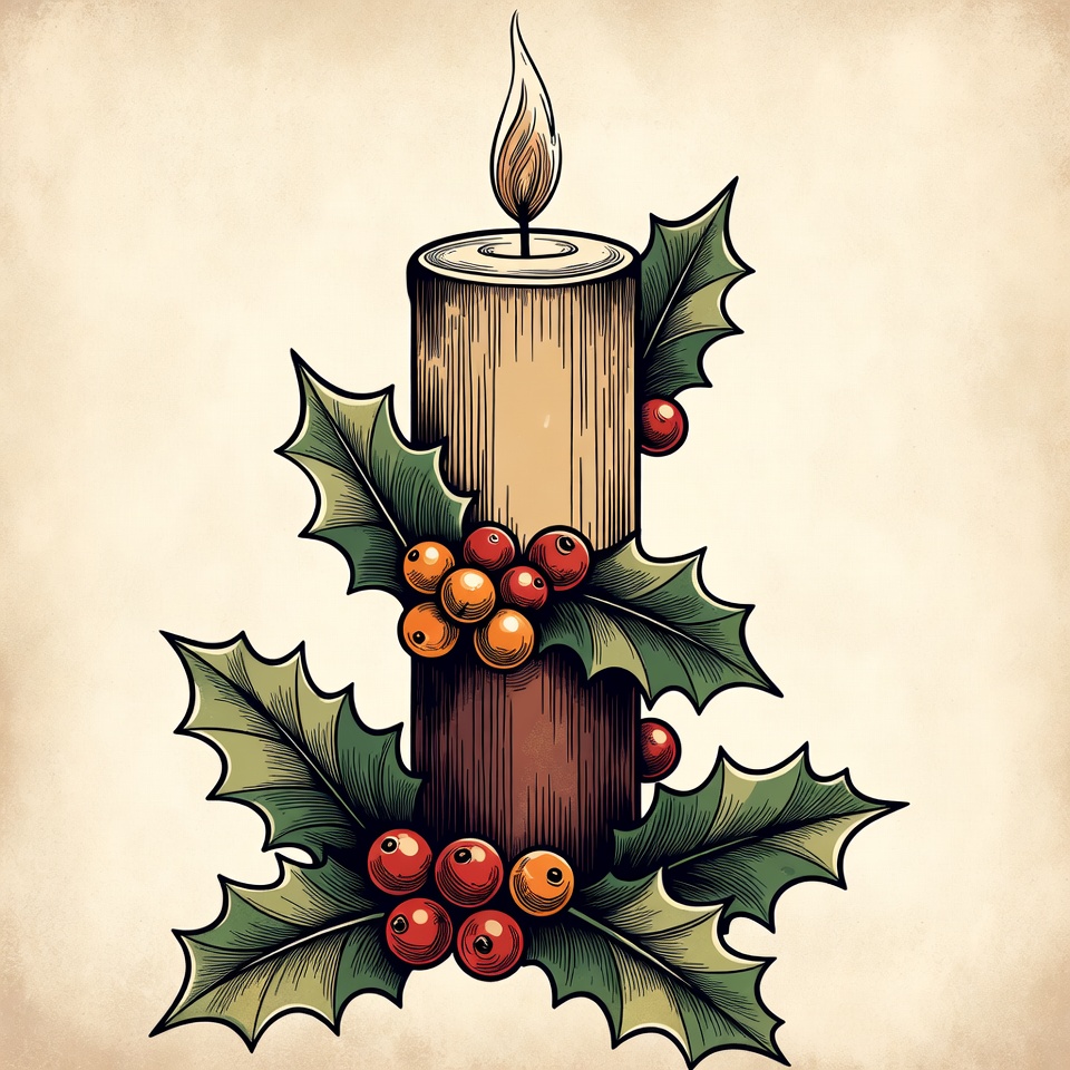 Holly Candle Tattoo Illustration