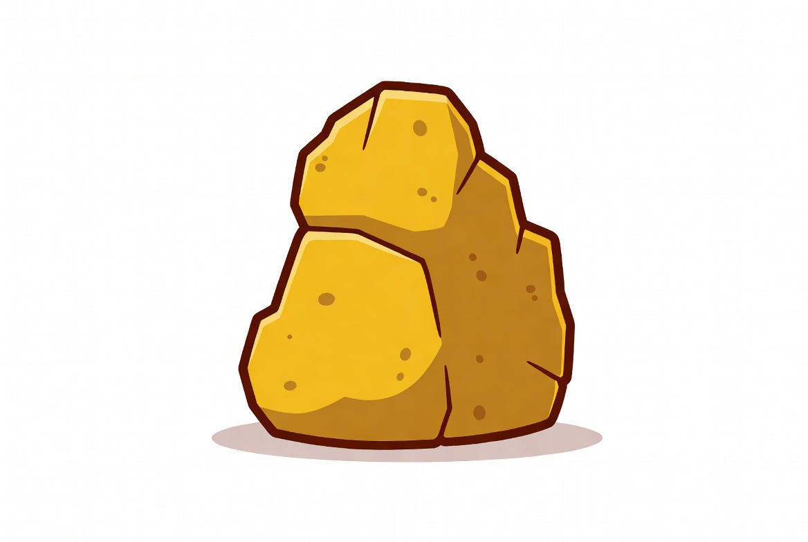 A vibrant yellow rock is depicted in a simple cartoon style with irregular, jagged edges. It features a smooth gradient shading and a subtle drop shadow, isolated on a white background.