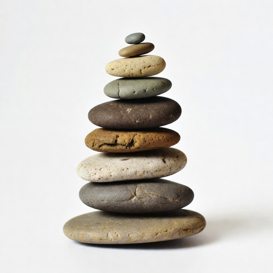 Stacked Pebbles on White Background