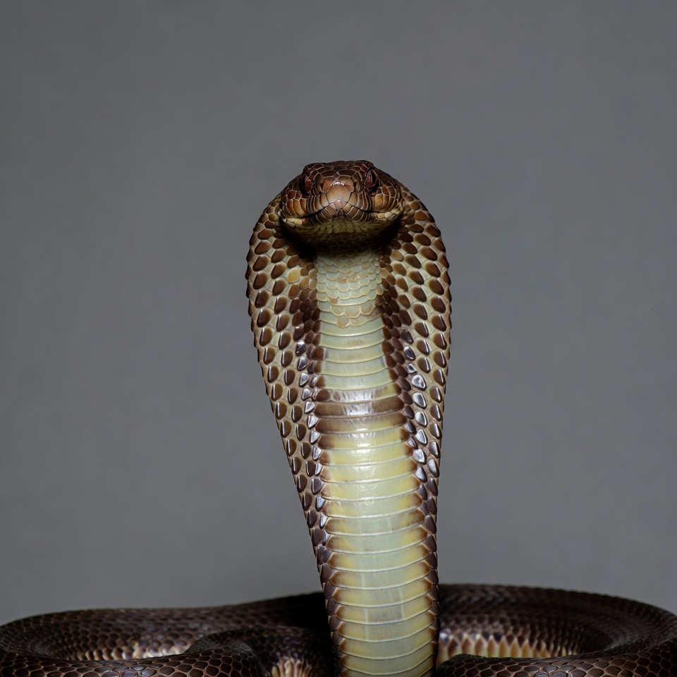 animal, brown snake, cobra, coiled snake, hood raised, isolated background, reptile, scales, snake, venomous snake, wildlife, yellow hood, king cobra
