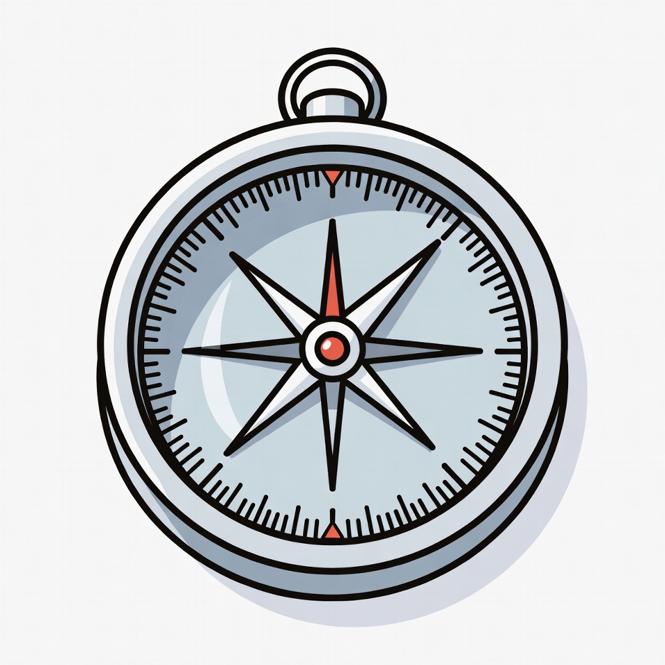 adventure, bearing, clipart, direction, directional, drawing, explorer, graphic, illustration, isolated background, map tool, nautical, navigation, north, orientation, pocket compass, pointing north, red needle, silver compass, travel, vector, compass