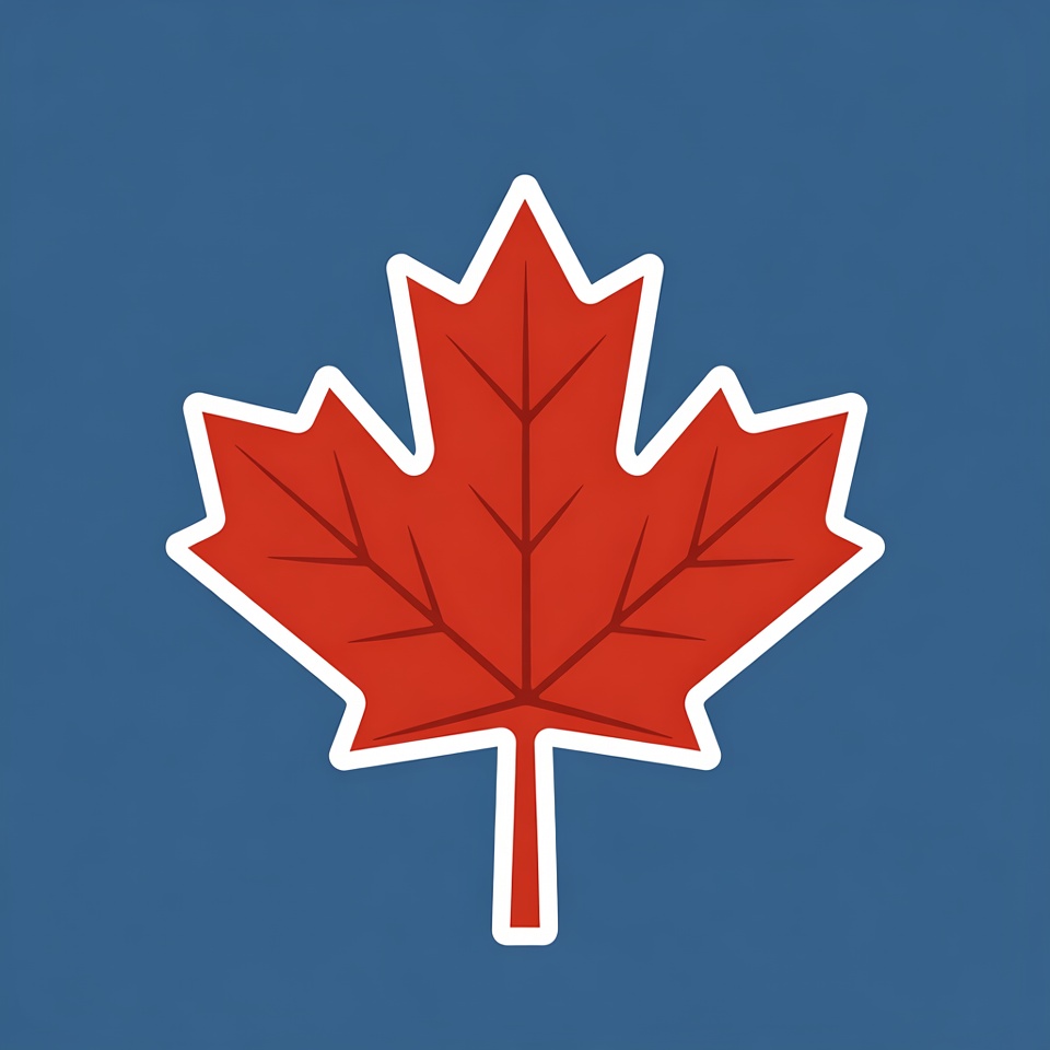 Canada flag, Canadian symbol, autumn leaf, blue background, clipart, flat design, illustration, leaf sticker, nature icon, patriotic symbol, red leaf, vector graphic, white outline, maple leaf