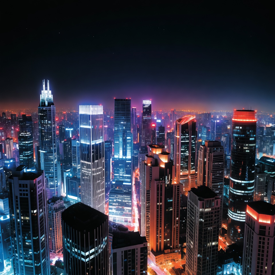 Vibrant Nighttime City Skyline