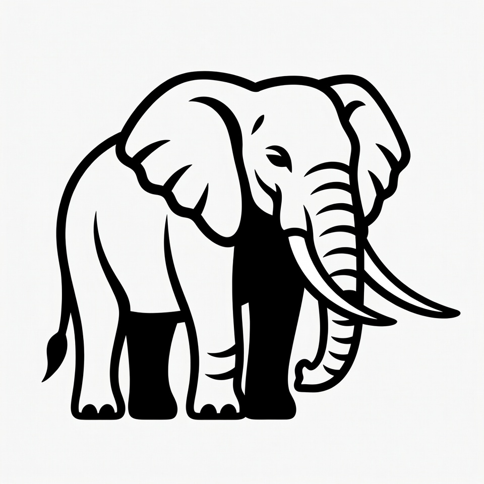 animal, black and white, clipart, drawing, illustration, isolated background, jungle animal, large ears, line art, mammal, safari animal, side view, silhouette, trunk, tusks, vector, wildlife, elephant