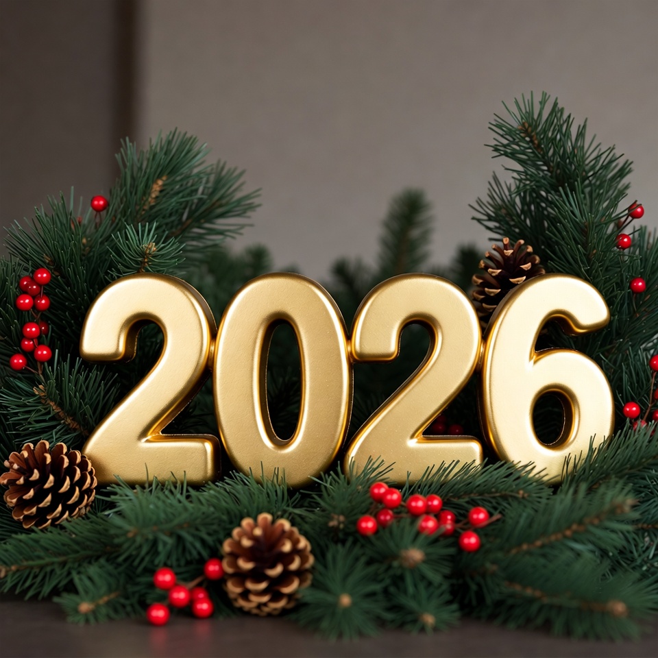 Golden 2026 Surrounded by Christmas Greenery