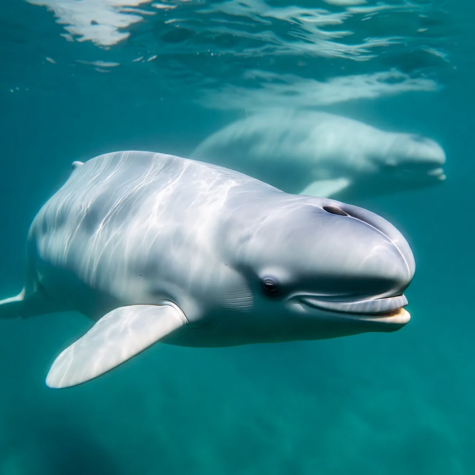 Beluga Whales Swimming Underwater