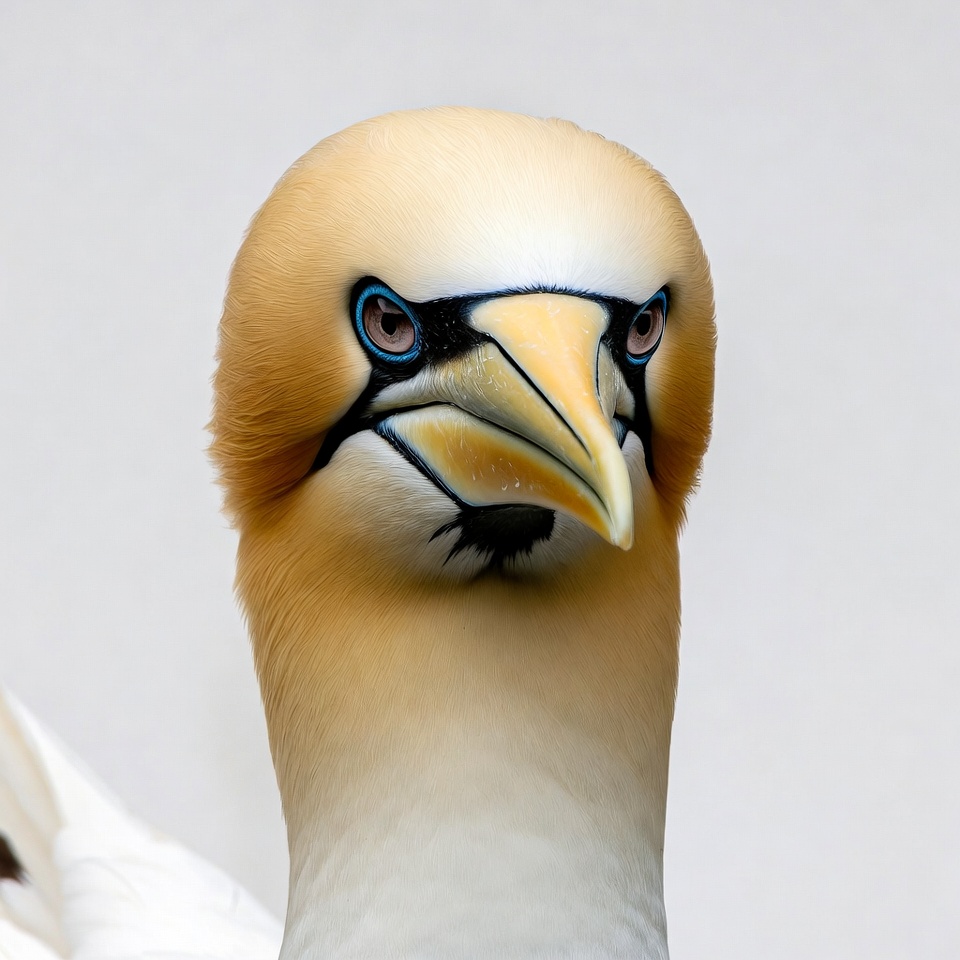 animal, bird closeup, bird eyes, bird head, bird portrait, black eye mask, blue eyes, booby bird, isolated background, sea bird, seabird, wildlife, yellow beak, yellow feathers, Nazca booby