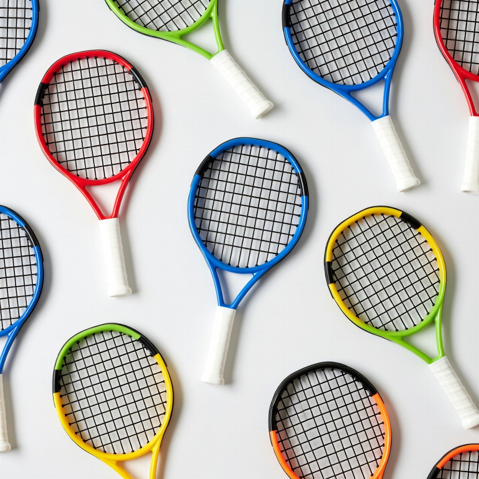 Colorful Mini Tennis Rackets Flat Lay
