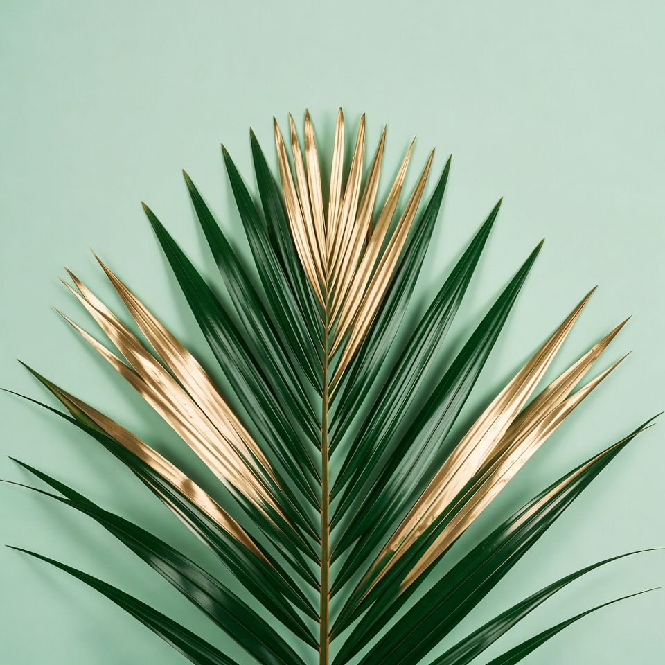 Gold-tipped Palm Leaf on Mint Background