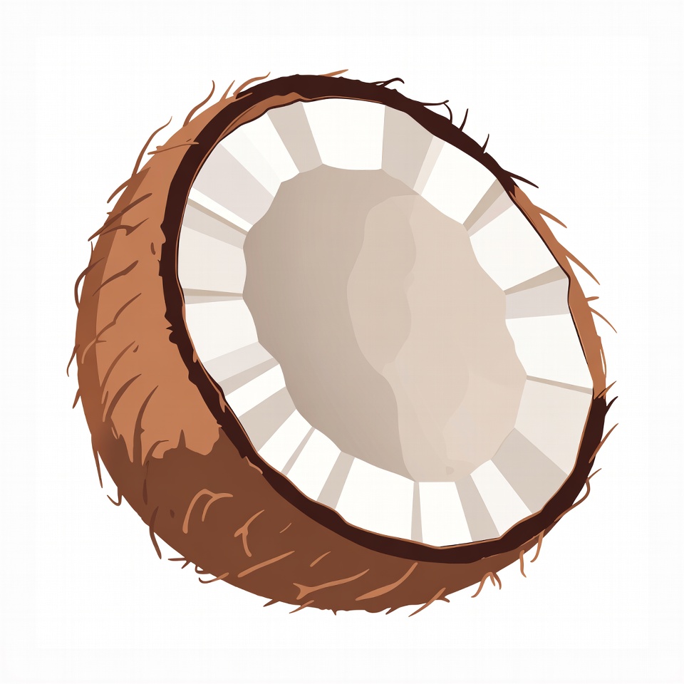 brown husk, clipart, coconut illustration, cut coconut, fresh coconut, fruit illustration, halved coconut, isolated background, tropical fruit, vector art, white flesh, coconut