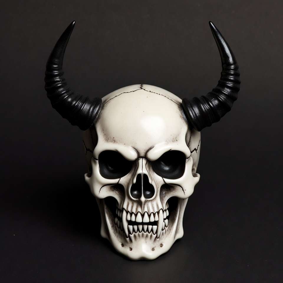 Demon Skull with Curved Horns